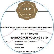 As a specialist business division of The Workforce Group, Accotech's Broad-Based Black Economic Empowerment credentials are measured through the Group's rating process. The Group has been awarded an AA (level 3) B-BBEE rating by BEE Online. This level represents a score between 75% and 85% compliance to the black economic empowerment targets set for the generic DTI scorecard. This enables you to account for 110% of your spend with us on your B-BBEE scorecard.